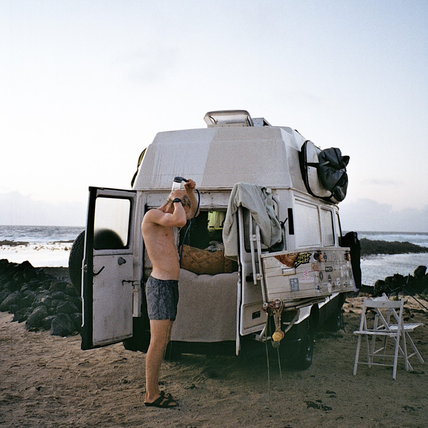 Wenn du keine eigene Dusche im Camper verbaut hast, hast du die Möglichkeiten an Raststätten oder Autohöfen, im Hafen oder Flughafen, in Fitnessstudios oder Sportvereinen oder auch häufig in einem Solarium zu duschen. Zusätzlich kannst du eine kleine, platzsparende Solardusche zum Beispiel einpacken, um auch an etwas einsameren Orten duschen zu können. Wenn du länger mit deinem Van unterwegs sein willst, empfehle ich dir aber eine Dusche einzubauen, da sie zu deinem alltäglichen Leben gehört und ständiges auf- und abbauen nervt. Wir haben unsere Dusche hinten am Kofferraum verbaut & haben so direkt die Türen als Sichtschutz.