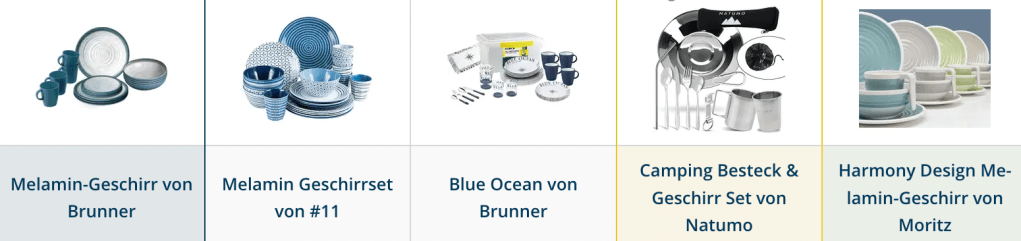 Bei Campinggeschirr ist es wichtig, dass es robust, leicht und hitzebeständig ist. Zudem ist es aber auch nicht verkehrt, wenn sie Spülmaschinen tauglich sind. An deiner Stelle würde ich Amazon ein bisschen durchsuchen, wir persönlich benutzen dieses Melamin Geschirr. Hier siehst du auch noch eine kleine Übersicht von weiteren Campinggeschirr-Sets.